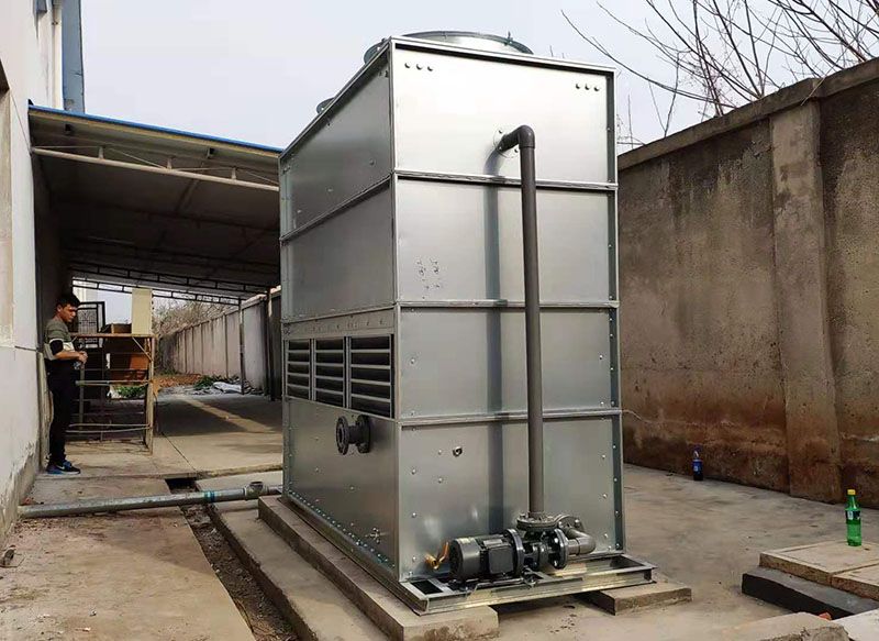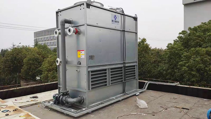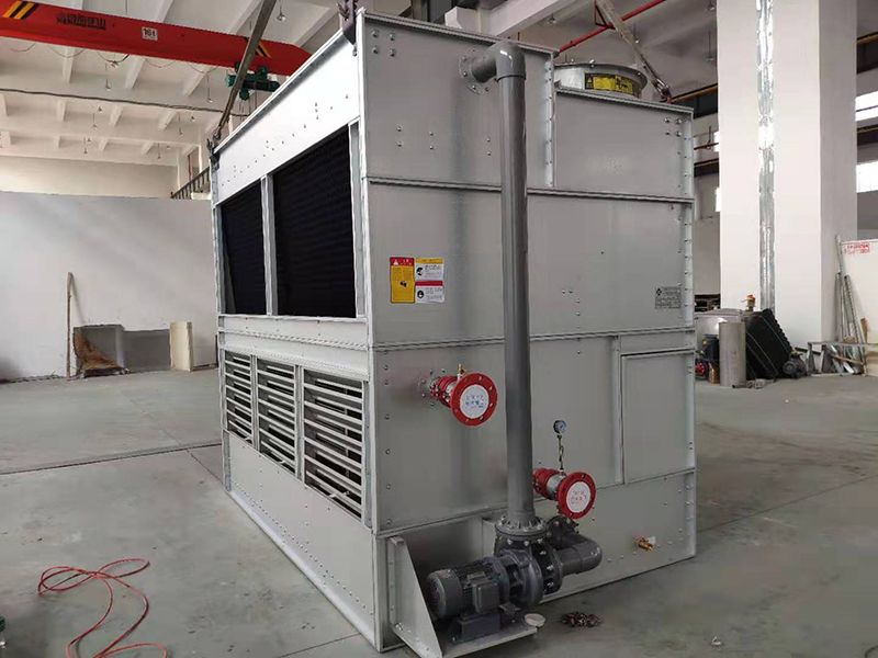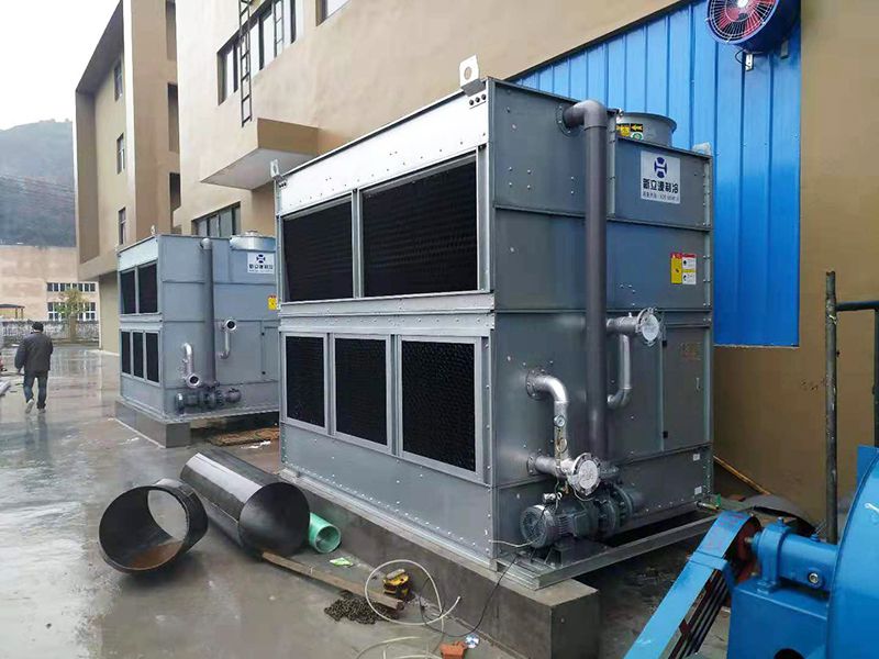 閉式冷卻塔(又稱蒸發式空氣冷卻器、密閉式冷卻塔或封閉式冷卻塔)是在塔內放置一個管式換熱器,通過循環空氣、管外噴淋水和管內循環水之間的熱交換來保持溫度下降。由于循環水封閉在管道中,可以保護水質不受污染,