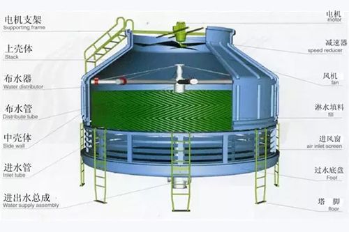 冷卻塔原理:冷卻塔是由本體、集水盤、消音毯、蜂窩式散熱片、散水系統(tǒng)、擋水板、冷卻風(fēng)扇、扶梯等組成。冷卻塔原理:是用需冷卻的水經(jīng)散水系統(tǒng)散開(kāi),蜂窩式散熱片一方面將散水管來(lái)的水進(jìn)一步散均勻,另一方面冷卻風(fēng)